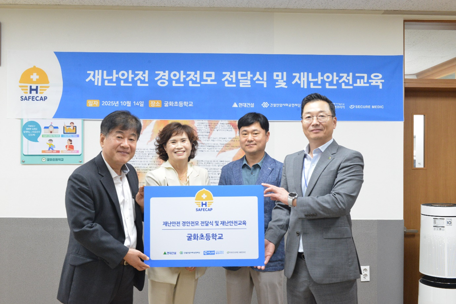 2025년 10월 14일 울주 굴화 초등학교에서 진행된 전달식은 현대건설, 건설산업사회공헌재단, 울산교육청, 시큐어메딕, 플랜코리아가 함께 했습니다.
