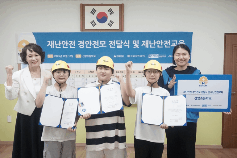 이에, 현대건설, 건설산업사회공헌재단, 시큐어메딕, 플랜코리아 4개 기관이 뜻을 모아 지진과 같은 재난 안전에 취약한 초등학생 및 교사들을 대상으로 재난안전용품을 보급하고 재난안전교육 및 모의 대피 훈련을 통해 실질적인 재난 상황 대응력을 향상시키기 위한 사회공헌사업을 진행하고 있습니다.