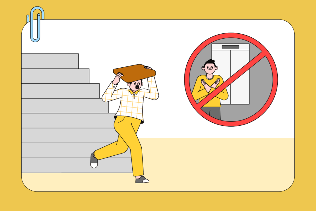 3️⃣ 빠르게 대피하기 위해 엘리베이터를 이용해도 된다? NO! 계단을 이용하자